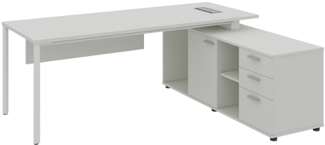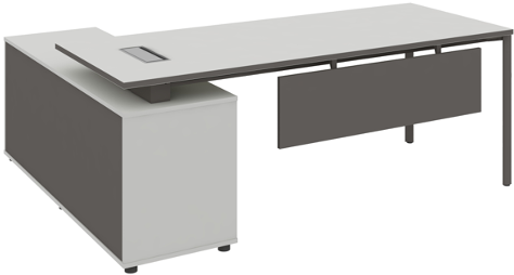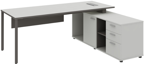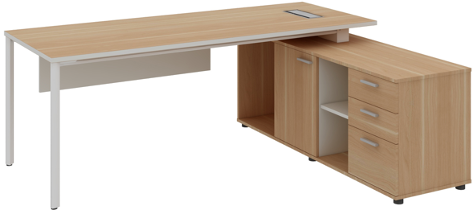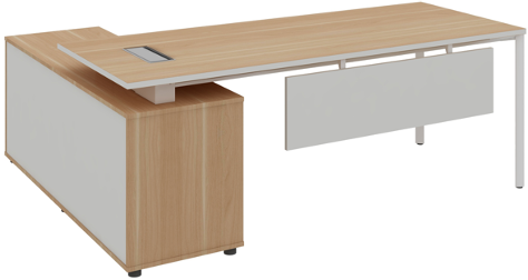 | Size: 2000*1600*750 Color: MF001-Moonlight White MF003-Talisai Walnut MF004-Virginia Walnut MF009-Vicenza Oak Description: L shaped manager table with fixed side storage 25 mm melamine desktop & 2 mm PVC edge banding Aluminum alloy flip cover Steel leg & aluminum beam with white / gray powder coating finish Side storage with three lockable drawers and one open door Including modesty panel and aluminum alloy handles |
