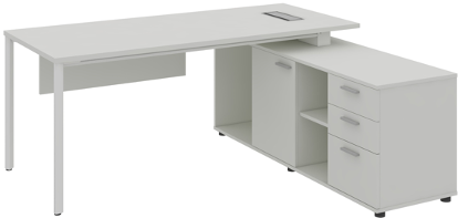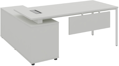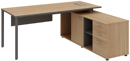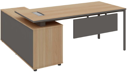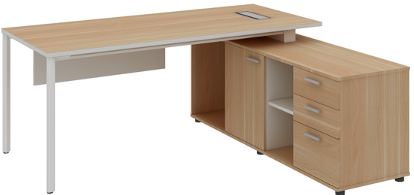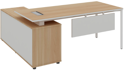 | Size: 1800*1600*750 Color: MF001-Moonlight White MF003-Talisai Walnut MF004-Virginia Walnut MF009-Vicenza Oak Description: L shaped manager table with fixed side storage 25 mm melamine desktop & 2 mm PVC edge banding Aluminum alloy flip cover Steel leg & aluminum beam with white / gray powder coating finish Side storage with three lockable drawers and one open door Including modesty panel and aluminum alloy handles |