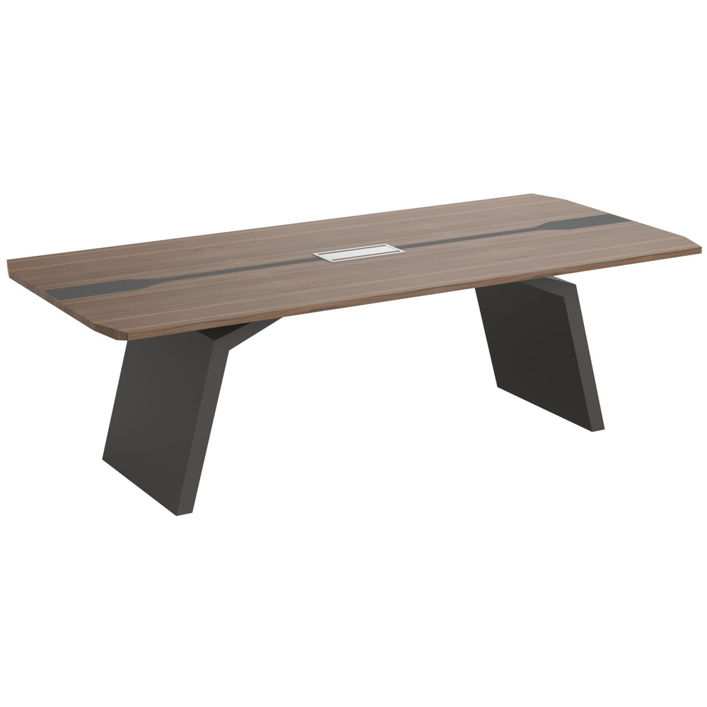 Size: 2400*1100*750 Color: Rectangular Meeting Table 54mm Wood Veneer Tabletop with Acrylic Stripe Double Side Flip Wire Box Above the Table Top Descirption: