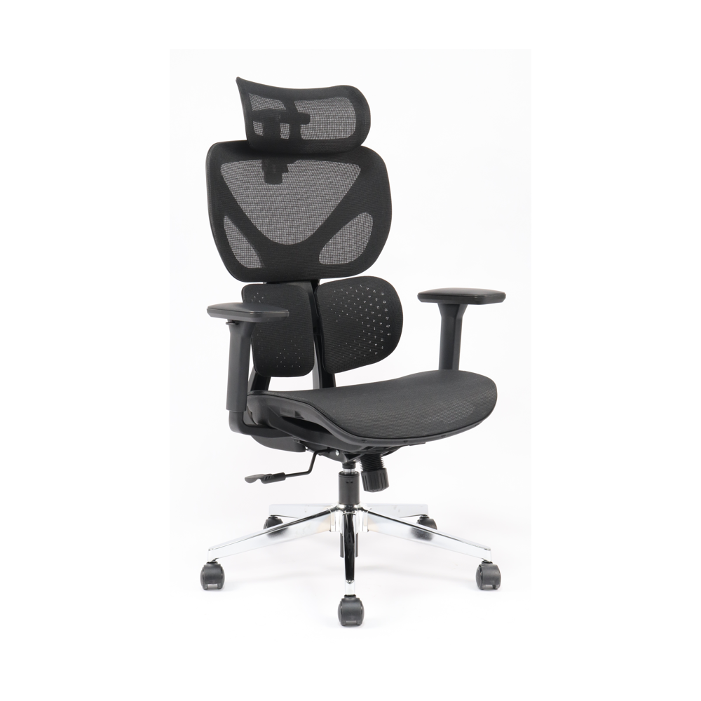 2. Back: Black Nylon Frame + full mesh + Double lumbar support
