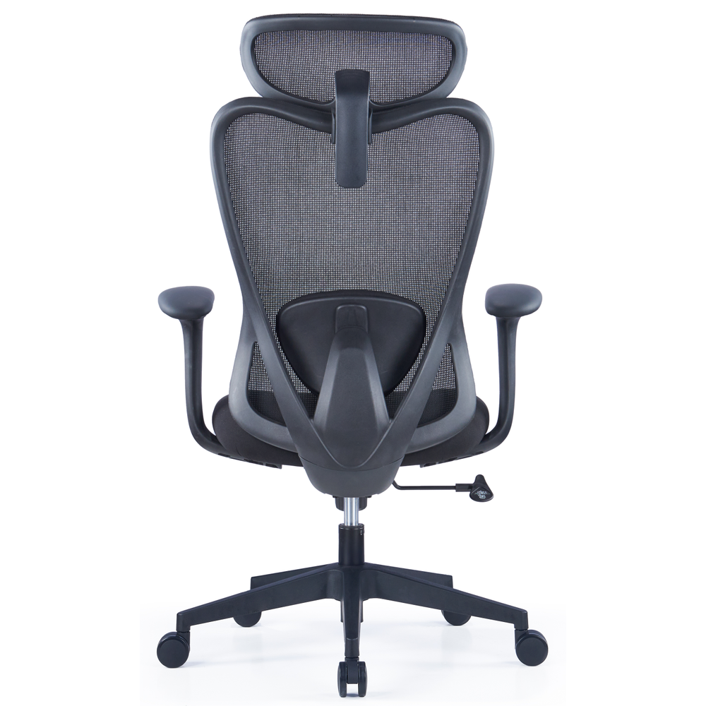 2. Back: Black PP frame with mesh + adjustable lumber support.