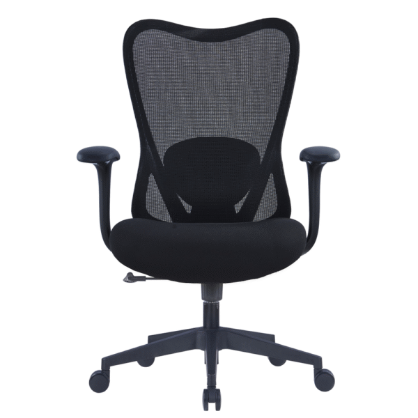 1. Back: Black PP frame with mesh + adjustable lumber support.